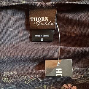 Chic black dress with floral design. Ideal for stylish outings. Thorn & Fable Mushroom Vines Mesh Dress With Bell Sleeves. This item is new with tags and comes from a smoke-free home.