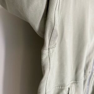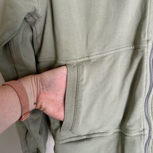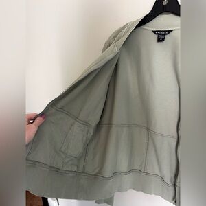 Athleta, bomber jacket, sweatshirt, full zip, green, sage, athleisure, workout, activewear, gym, yoga, pilates, casual, comfort, cozy, stretch, running, hiking, outdoor, sporty, streetwear, women’s, medium, minimalist, utility chic, preppy, quiet luxury / stealth wealth