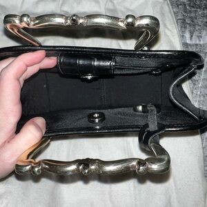 Black croc embossed leather with metal silver handles