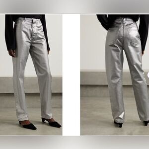 Veronica Beard's 'Daniela' jeans are designed with a metallic silver coating - a fresh, unexpected deviation from classic washes. Designed to sit high on the waist, they have a straight-leg shape and traditional five pocket construction. Wear yours with a bodysuit or cropped sweater.