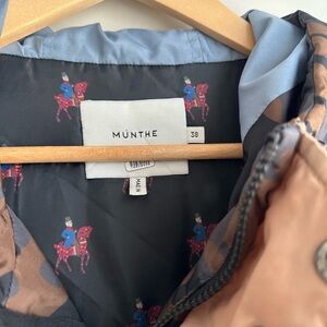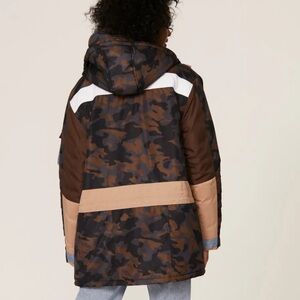 Go from the city to the slopes in this sporty-cool Munthe coat that combines classic camo with contrasting trim.