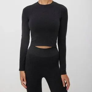A cropped women's crewneck long sleeve tee tailored for an active lifestyle. Crafted from our seamless SoftSculpt fabric, this flattering shirt hugs the body while allowing for unrestricted movement, maintaining its shape wear after wear.