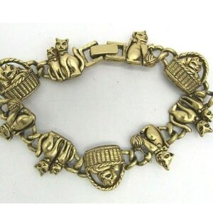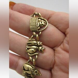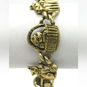Adorable Vintage Gold Tone Kitten/Cats in Basket Gold Tone Bracelet 6.75" GUC