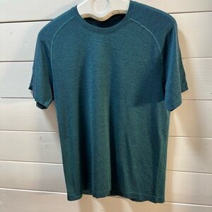 Lightweight Lululemon men’s short sleeve t-shirt designed for training and everyday wear. Clean, versatile green tone with a breathable, comfortable feel. Athletic style that’s easy to wear on its own or layered.