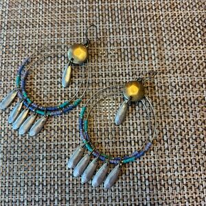These artisan earrings feature a beautiful blend of gold and silver tones, accented with blue and turquoise beads. Perfect for adding a unique touch to any ensemble. 2 1/2”