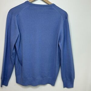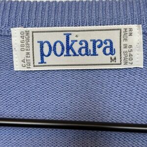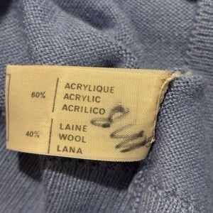 Vintage V-Neck Wool Blend Sweater Medium Blue Made in Spain Classic Minimalist