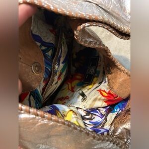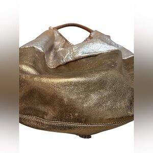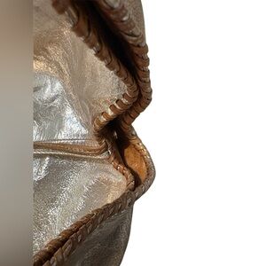 Elevate your style with this chic metallic hobo bag. Featuring a stunning silver and Bronze design, this bag is perfect for any occasion. Its spacious interior and elegant tassel detail make it both practical and fashionable.