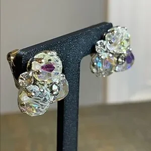 1950’s Coro Faceted Crystal & Rhinestone Cluster Clip-on Earrings