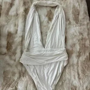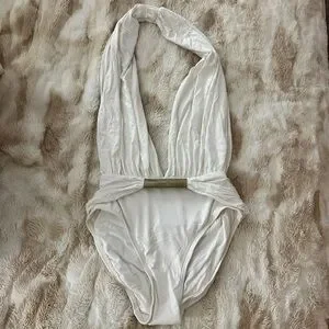 NEW Carmen Marc Valvo Deep Plunge Neckline One Piece Bathing Swim Suit Sz 10