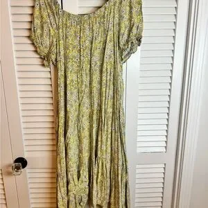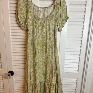 Chic floral maxi dress by J. Crew. Features a vibrant yellow pattern. Ideal for casual outings or special events.