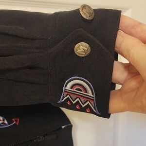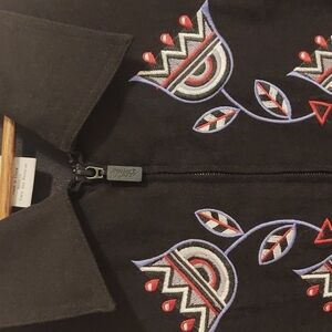 Bob Mackie Wearable Art Women's jacket. Black with tulip-like embroidery design