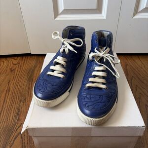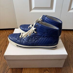Versace Blue Quilted Leather High-Top Sneakers Size 12