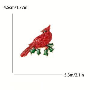 ~Lovely Gold Cardinal & Holly Branch Brooch Christmas Pin
