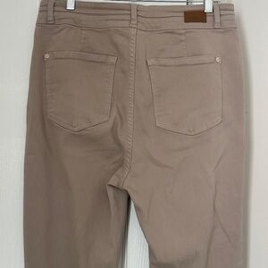 Excellent condition Judy Blue Jeans Size 15/32. Garment Dyed flare jeans. Perfect classic style. Great way to wear jeans to work if you don't have a jeans policy - same comfort as regular jeans, but the look of pants. Pretty tan/beige color, will be a closet staple.