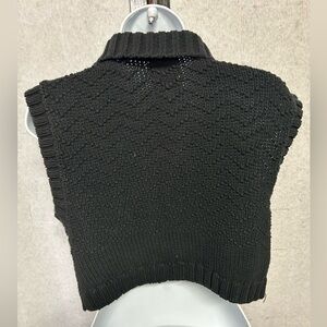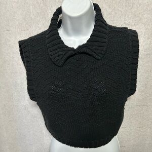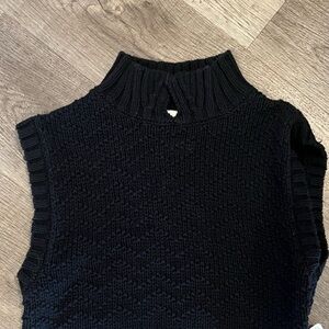 Free People winding road black sweater crop tank. Size XS but fits up to medium. Super cute to layer for fall! Chic black knit sleeveless crop top with a stylish collar.