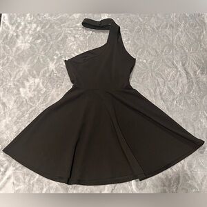 Stylish black dress with a one-shoulder design. Ideal for versatile wear.