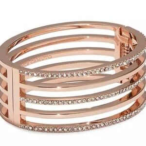 Vince Camuto Rose Gold pave crystal Alternating Line hinge Bangle NWT