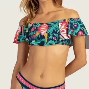 TRINA TURK India Garden Ruffle Bandeau Swimsuit Top