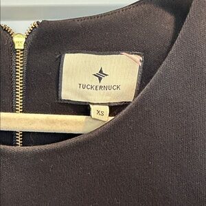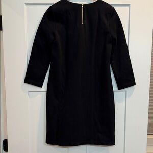 Elegant black dress with white accents. Features a sleek design and classic style. Never worn.