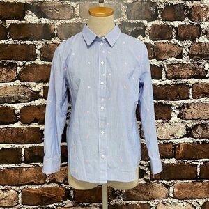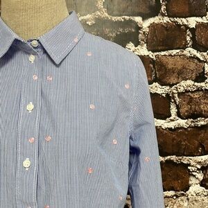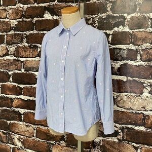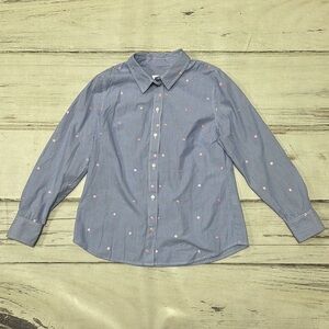 1901 Blue Shirt Top Button Up Stripes Pink Polka Dots Size Small
