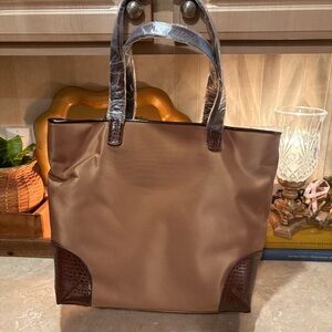 Stylish Brown Shoulder Bag with Leather Trim and Comfortable Handles nwot