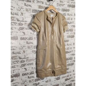 2B.Rych Dress Size 4 Metallic Gold Sparkle Edgy Zipper Pockets Linen Rocker