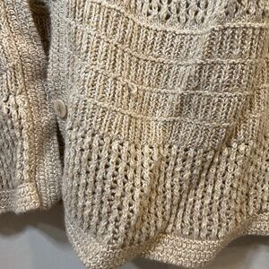 Christopher & Banks Tan/Beige Open Knit Cardigan Sweater 3/4 Sleeve