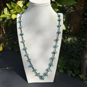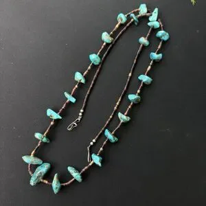 Vintage beaded necklace featuring irregular turquoise nugget stones