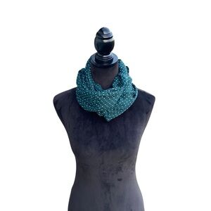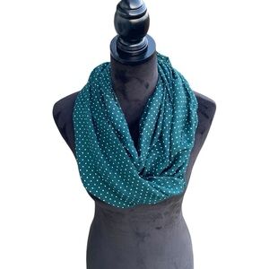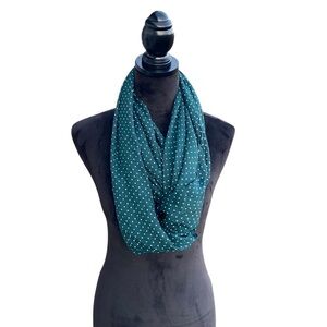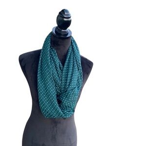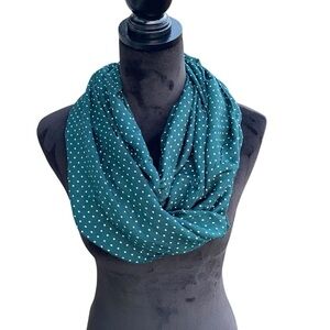 Loft Outlet Ladies Green And White Polka Dot Infinity Scarf cozy boho
