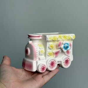 Vintage 60s Napco Porcelain Plant Pot Nursery Decor Train Japan