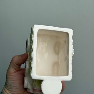 Great for storing anything! Plants, paintbrushes, candy bowl. It was intended as a planter in a baby girls room, circa 1960’s.