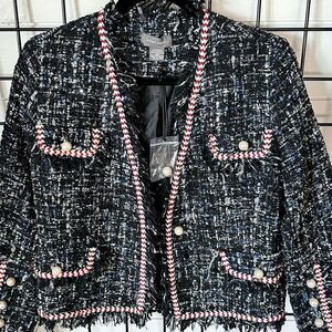 Sans Souci Navy Tweed Silver Sparkle Patriotic Nautical Trim Blazer