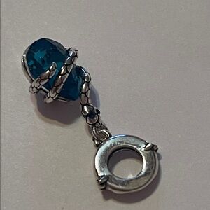 This elegant Pandora 925 Sterling Silver charm has a blue gemstone wrapped in a sleek silver snake setting. Perfect for adding a touch of sophistication to any outfit. Makes a great gift.