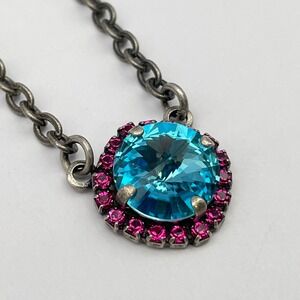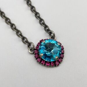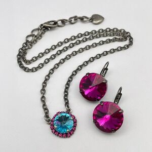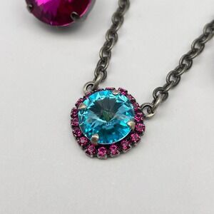 Blue Fuchsia Rivoli Sparkling Rhinestone Necklace Earring Set Similar to Sabika
