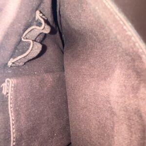 Clean cream tote with floral design. Features bamboo handles. Stylish and versatile.