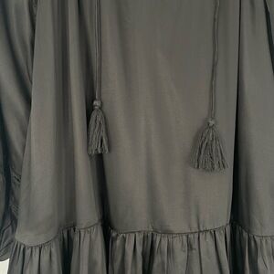 Cleobella Women's Black Bohemian Loose Fit Long Sleeve Tassel Tie Dress Size XS