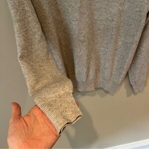 J. Crew v neck long sleeved sweater with ribbed neckline and cuffs. Size large. Lightweight material and light gray color. In excellent condition! Minimally used