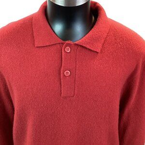 Commons 100% Cashmere Polo Sweater Mens Large Red Long Sleeve