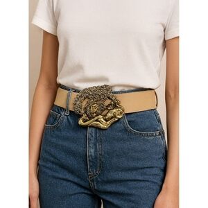 Vintage Buxton Belt Buckle “Lion and Lamb” Gold-Tone Collectible Americana