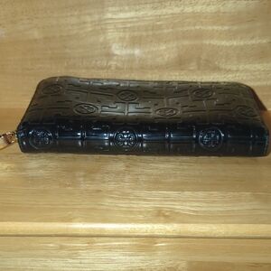 Stay organized with style. Embossed Tory Burch logo designs give this patent leather wallet dimension, texture and undeniable sophistication. With zip closure, gold tone hardware, interior coin zip pocket and 8 credit card slots.