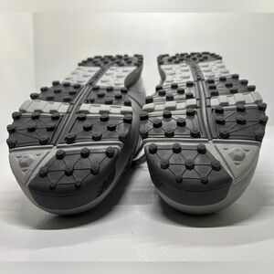 Excellent condition New Balance Breeze spikeless golf shoes in a versatile gray colorway. These shoes show very minimal wear—the outsoles are clean and the uppers are in great shape, indicating they’ve been worn little, if at all.