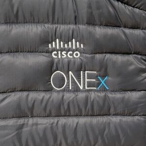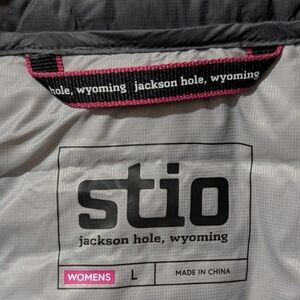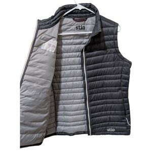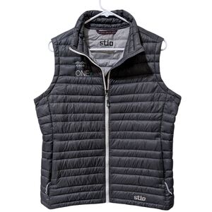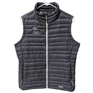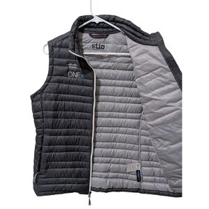 Stio Pinion Down Vest with Cisco and ONEX logos Women's L - Magnet Gray