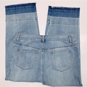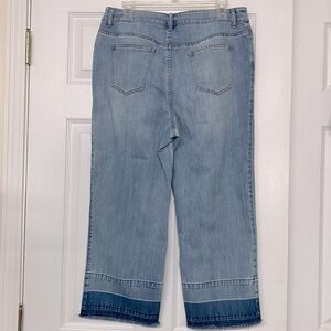 Chico's Wide Leg Denim Crops Button Fly Ombre Raw Edge Hem Sz 10