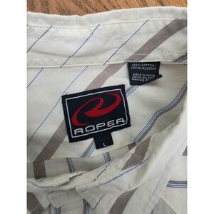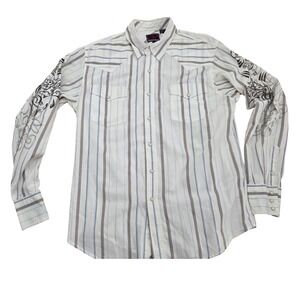 Roper Western Shirt Mens L White Stripe Embroidered Sleeves Cotton Button Up