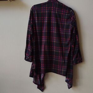 New York Laundry Lightweight Open Drape Front Long Plaid Long Sleeve Top Sz XL