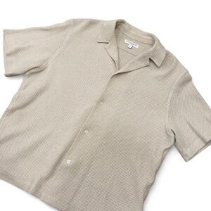 Classic beige button down shirt. Short sleeves for a relaxed fit. Ideal for casual wear. Lightweight and super breathable.