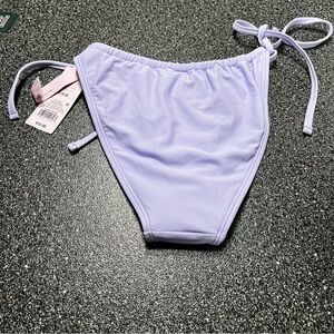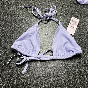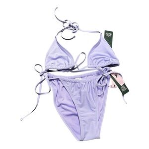 Chic lavender bikini with adjustable ties. Ideal for poolside lounging.