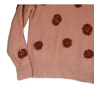 Madewell Sweater Womens XS Pink Wool Alpaca Blend Embroidered Flowers Boho