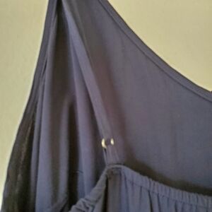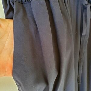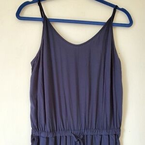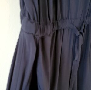 Women's Banana Republic Navy Jumpsuit. Size 4. 100% Viscose. Pull On Silky Jumpsuit. Two front pockets. Adjustable spaghetti straps. Waist across front is 13"inches. Length top to bottom is 57"inches. Across chest is 13"inches. Rise is 11"inches. Inseam is 27"inches. Zipper Ankles. Ties at Waist. Jumpsuits. Ladies. Dressy. Casual.