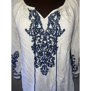 Chic Connection Boho Embroidered White Navy Dress Womens Sz S